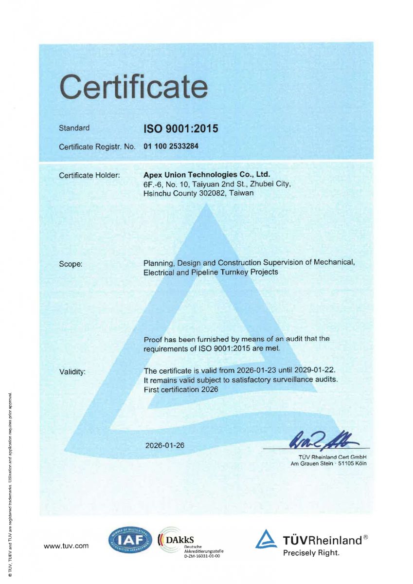 弊社は、配管や電力などのシステム設計と施工から品質検査まで、総合的なエンジニアリングを提供しています。また、弊社の専業チームには各領域の専門知識を持ち、高品質なガス、化学、空調、電気機械システムを提案し、ガス配管の溶接・検査・エンジニアリング・設備電力および電気制御システムを含む高性能のシステムエンジニアリングサービスを提供することに尽力しています。